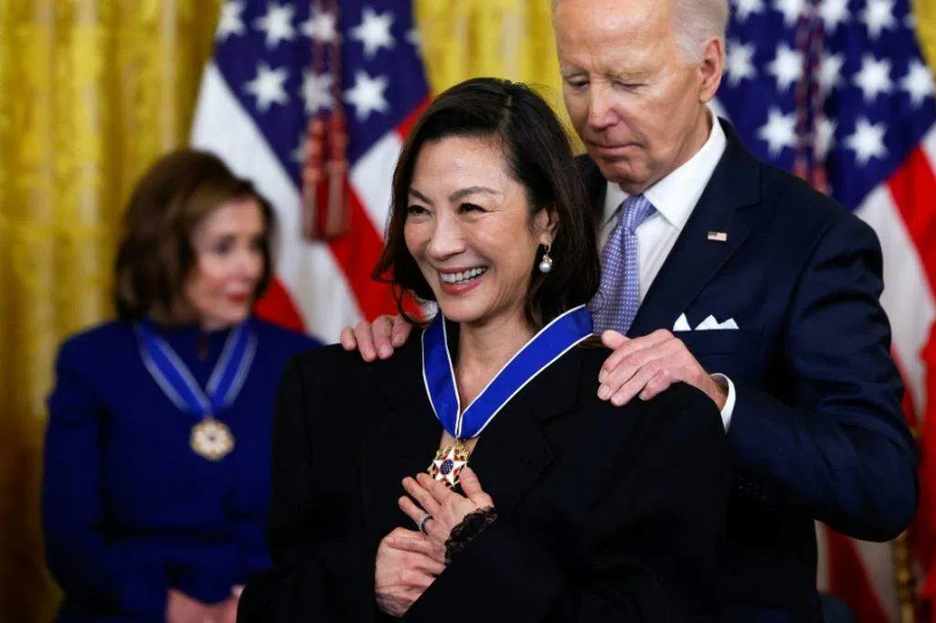 杨紫琼金发造型让人惊艳。 (法新社)