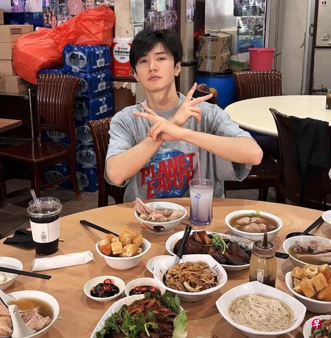 除了尽情游玩,陈哲远还分享了品尝本地特色美食肉骨茶的照片,仅见卤猪肉、腐竹皮、面线、油条等摆满了整张桌子,他则张开双手比“Yeah”,他也吃了蛋炒饭、搭配白切鸡、烧鸡和烧肉等美食。