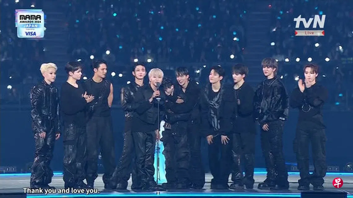 WOOZI说:“我们连续在‘MAMA’得大奖,而且今年还得了两个大赏,这个殿堂是连想象都难以想象的位置。对不起,我不是这么多话的人,其实昨天是我生日,对于庆生总是感到有负担,不太喜欢人家为我庆祝,但这个奖作为生日礼物,心情真的很好。十年来制作音乐,我对于音乐的研究不曾松懈过,虽然是很老套的话,但身为歌手,我们会用够好的音乐报答粉丝,13个人会稳稳固固地继续走下去。”