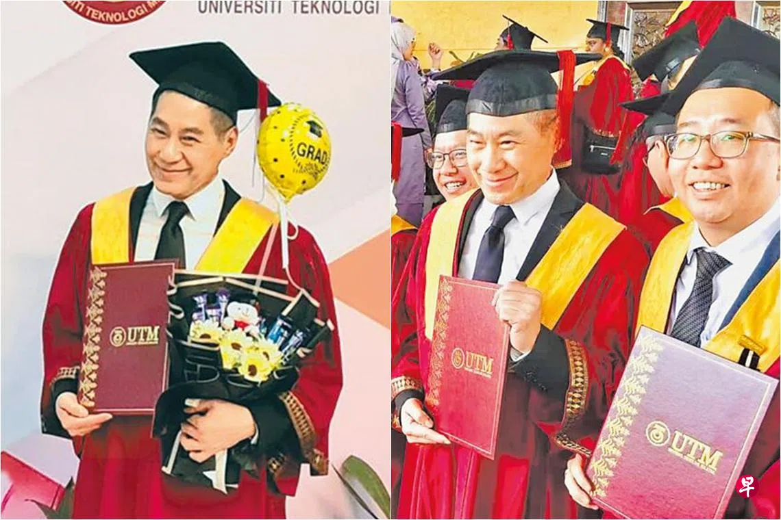 (台北讯)65岁歌手文章活到老学到老,日前顺利取得马来西亚理工大学的工商管理硕士学位。文章9月因右眼急性青光眼入院动手术,不过眼疾并没有击退他求学的动力,他忆起先前除了工作和商演,还要找时间读书,每天忙得不可开交却甘之如饴。他透露,预计2025年赴英国进修工商管理课程。