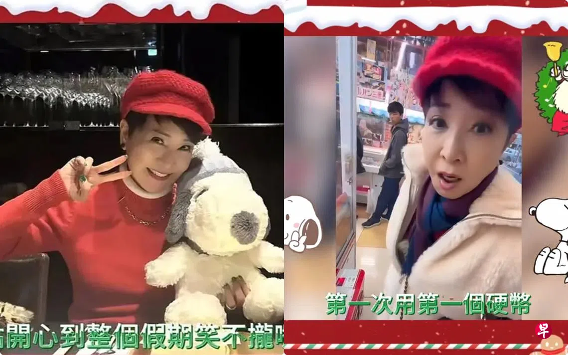 陈淑芬还分享了一则视频,视频中狄波拉戴着一个红色针织帽,与孙子在娃娃机前认真抓娃娃。陈淑芬透露,这是狄波拉第一次玩夹娃娃机,就抓到了一个史努比娃娃,孙子惊喜不已封她为“神奇嫲嫲”,让狄波拉开心到整个假期都笑不拢嘴。