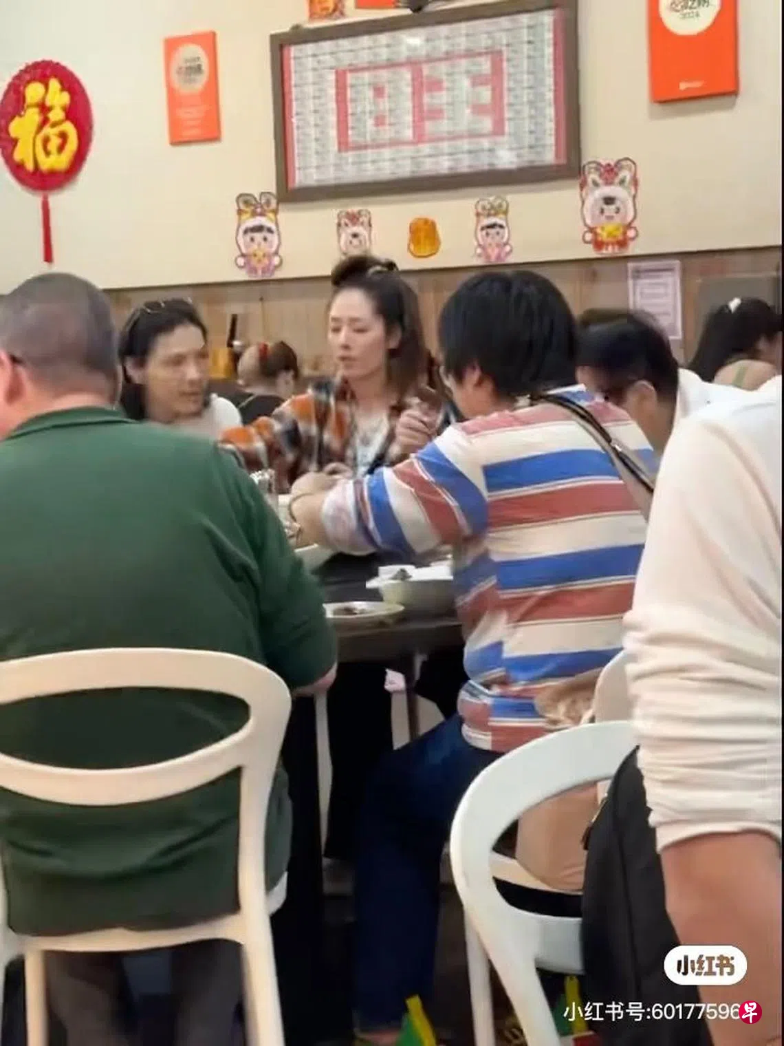 郭碧婷的父亲则坐她对面,身穿绿色上衣。一行人目测约10人左右,在新加坡一间肉骨茶店享用美食,看起来其乐融融。