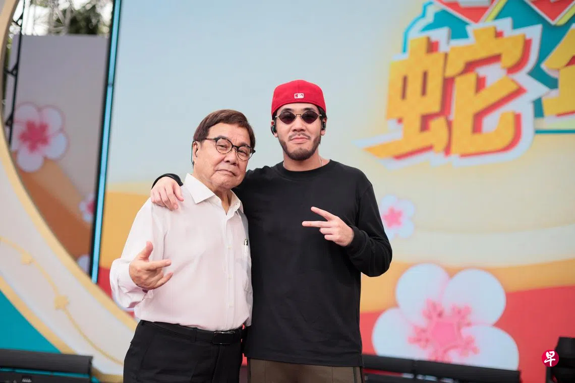80岁长青歌王黄清元和32岁说唱歌手西阁(ShiGGa Shay)原本是不相识的两代新加坡歌手,两人因新传媒8频道除夕特备节目《嘻嘻哈哈蛇年乐》首度同台,携手献唱新版《可爱的人生》跟观众拜年。