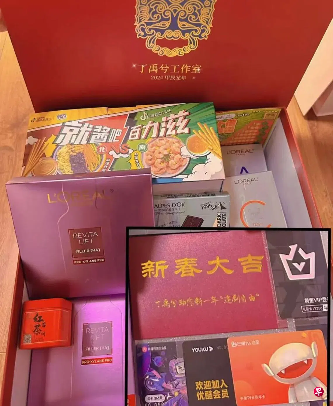 顶流们的礼盒里奢侈品、高端护肤品应有尽有,而仍在上升期的演员们,礼盒则显得“接地气”许多。
