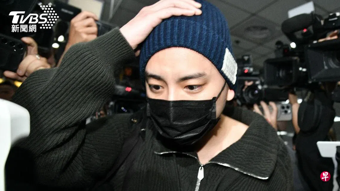 他身穿墨绿色毛衣、深蓝色毛帽,侧背包包现身,面戴口罩不发一语,眼神看起来相当空洞。他一人独自到场,首先量体温,并听注意事项,接过工作人员发送的电话卡。在下月台准备离开搭乘专车时,记者一拥而上询问“今天要入伍了,有什么话想说?”、“是否担心无法重返演艺圈?”、“接下来的作品怎么办?”,但他仅是眉头深锁不发一言,几度看起来想要发言,却欲言又止。