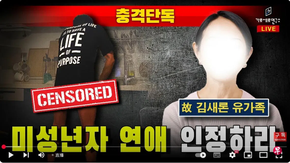 话才说完,频道直接在封面照放上应该是金秀贤“没有穿裤子的洗碗照”,下半身用红字打上“审查”的英文字,刻意遮住重要部位。封面的韩文标题则是“金赛纶家属‘金秀贤承认与未成年少女交往吧!’”,再次让金秀贤成为箭靶。