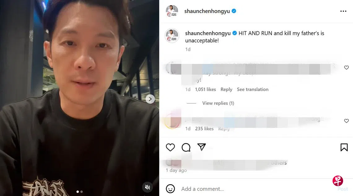 陈泓宇28日在Instagram上贴出目击车辆所拍摄到的公路摄像录影片段,披露父亲遇到撞后逃的车祸,并希望肇事者能出面向父亲道歉。陈泓宇告诉早报,拍下事发经过的司机是甘榜里认识的人,司机和一些甘榜的人第一时间帮助陈爸爸,并把录影片段传给陈泓宇。陈泓宇说“已经报警,警方说抓到人,不过也不知道是不是……”,一言难尽。