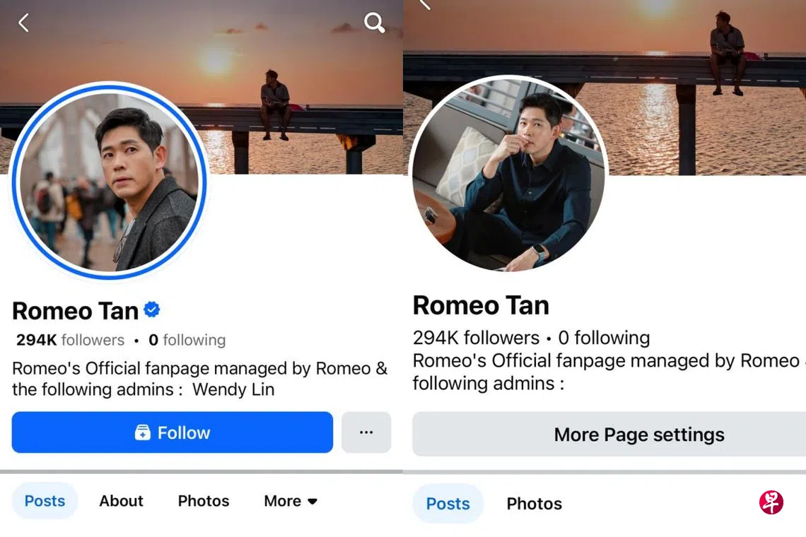 “Romeo Tan”和新加坡艺人陈罗密欧的洋名一样,也与后者取得蓝勾认证标记的官方粉丝脸书专页“撞名”。“Romeo Tan”的头像也是陈罗密欧的照片,因此乍看会以为是正牌。