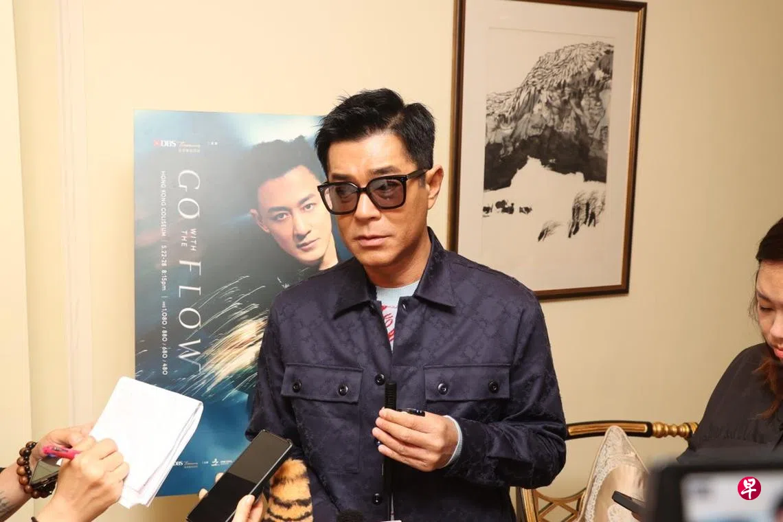 (香港讯)林峯时隔九年再登红馆开演唱会,老板古天乐(古仔)16日惊喜现身记者会祝贺对方他,笑言不介意唱跳。提到飞蚊症情况,他透露已安排在下个月做手术,期待手术后看到清晰世界。
