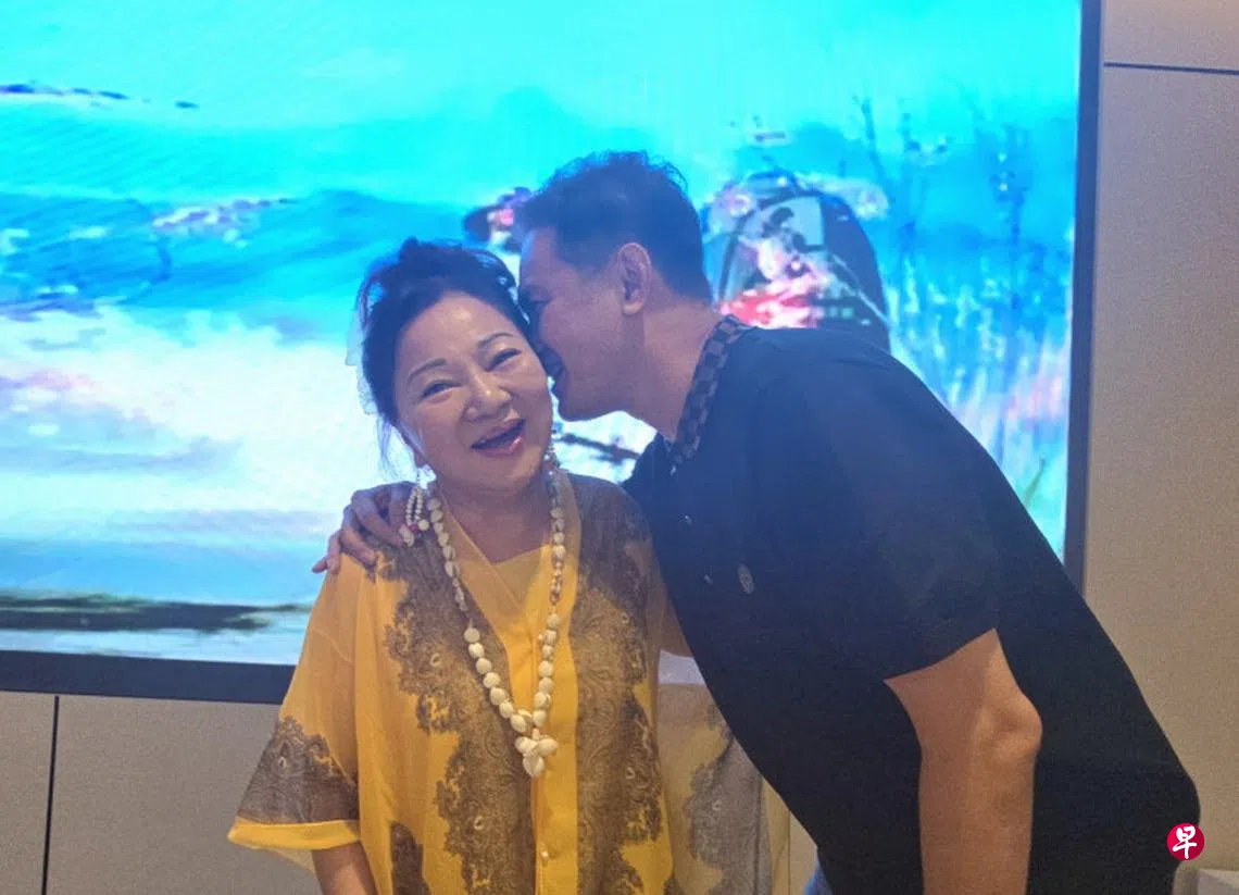 (马六甲讯)据《自由时报》独家报道,白冰冰跟铁粉一起到新马旅游,星期三(4月23日)正好碰到她过70岁大寿,马来西亚拿督刘少锋专程从吉隆坡赶到马六甲为她庆生,还在大家起哄下献吻。因为从来没有粉丝跟朋友敢亲她这位综艺大姐大,面对年轻帅气的拿督献吻,白冰冰忍不住露出娇羞的笑容。