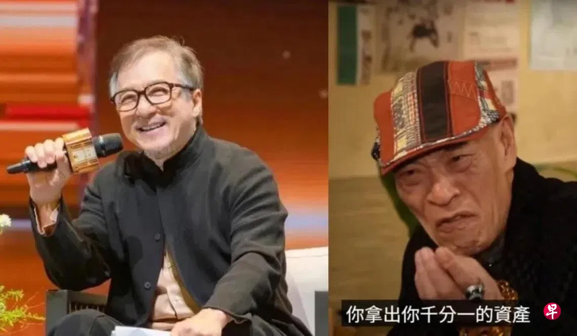 对此,他向成龙喊话:“喂,成龙,你拿出你千分一的资产,不要说多少了,都够养他们一辈子,你何必呢?你的钱可以带进棺材吗?你搞得一团糟,每一个都没有了,你不要忘记(是)这班人跟你拼出来的。”