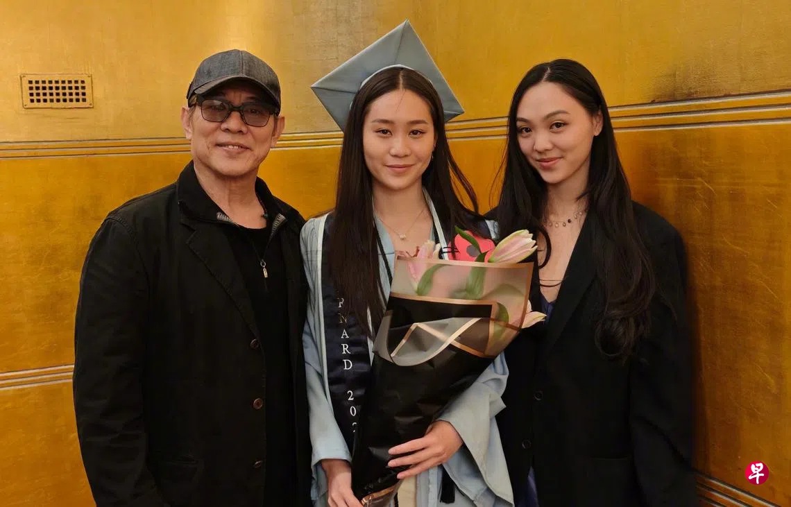 李连杰的女儿都在美国求学。他曾透露,二女儿是眼科医生,三女儿Jane毕业自哈佛大学,而小女儿Jada今年则是巴纳德学院的毕业生。该校是位于纽约的私立女子文理学院,隶属于哥伦比亚大学。李连杰和Jane参加Jada的毕业典礼,留下父女三人合照。