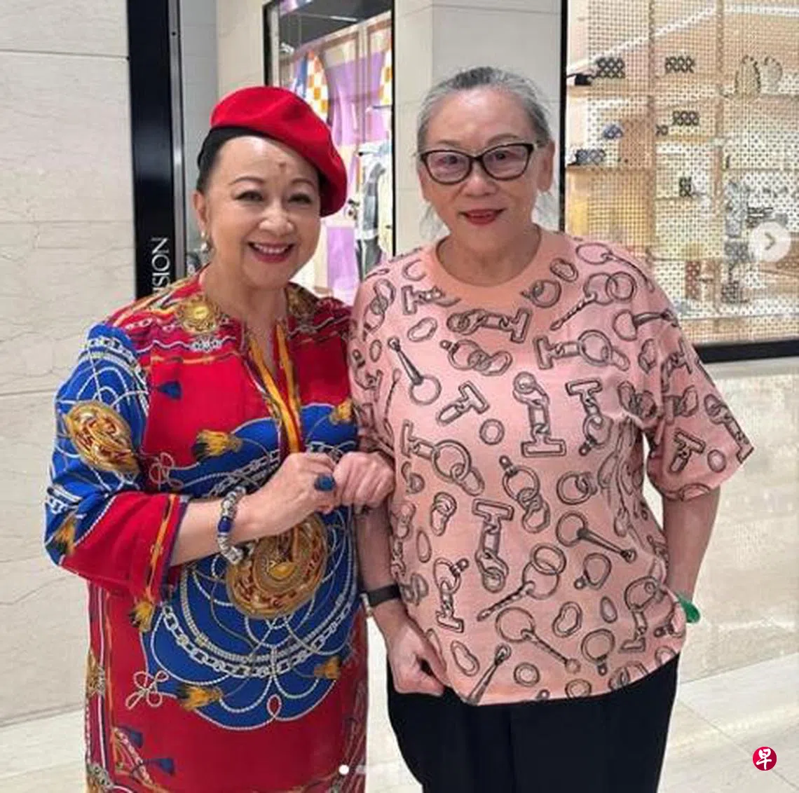 在照片中,75岁的薛家燕戴上红色画家帽和红色花上衣,站在姚苏蓉旁边显得十分开心,颇有小粉丝的感觉。今年底就步入80岁的姚苏蓉则穿上粉红色上衣配衬黑色长裤,腰板笔挺,精神看来相当好。但相较于2024年初曝光照片,身型明显圆润不少。