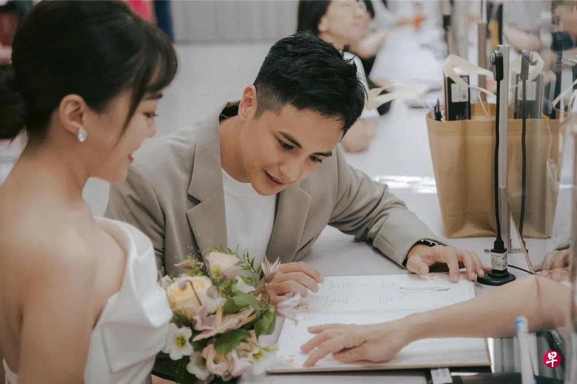 23日一早,曾子余和女友格蕾丝(Grace)换上轻婚纱,先带着亲友到户政事务所完成人生大事,随后到公园拍下甜蜜瞬间,为日后拍摄婚纱照预热。曾子余紧张与兴奋的表情全写在脸上。