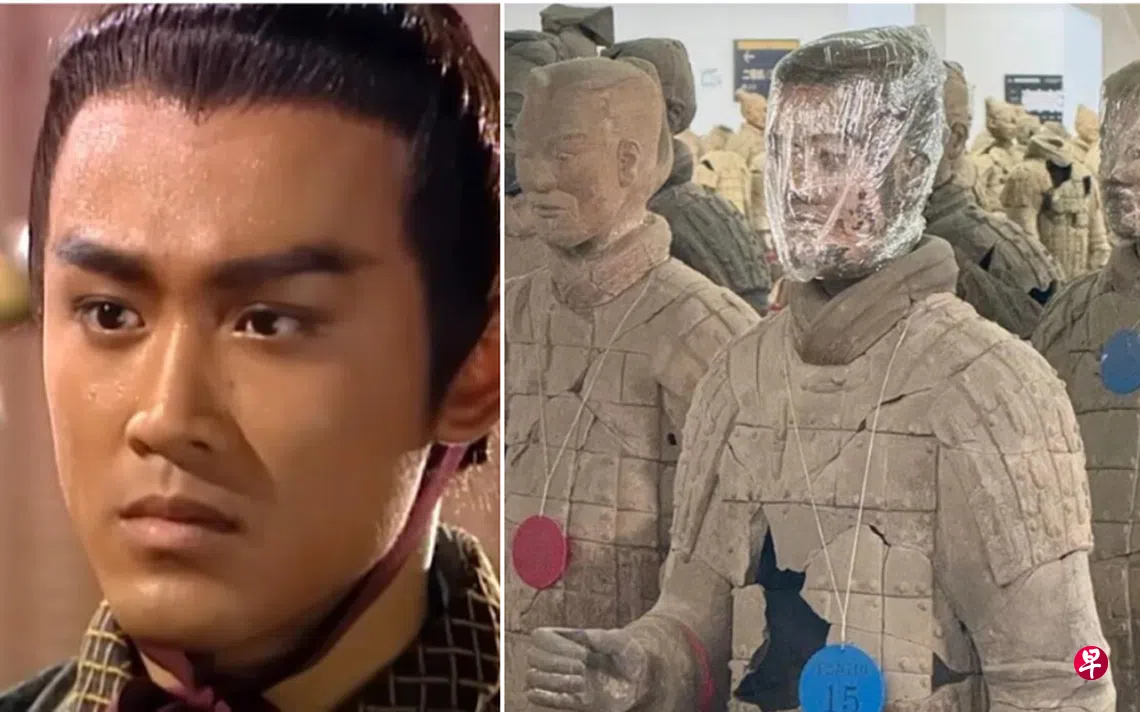 (综合讯)45岁林峯在2000年凭着剧集《寻秦记》中饰演秦始皇赢政一角,令观众印象深刻。近日有中国网民参观兵马俑博物馆时,意外发现一尊彩绘陶俑与他“撞脸”,相当好笑。