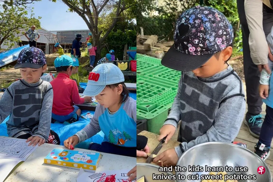 该幼儿园的教课方式随性而自由,“孩子们没有真正坐下来上课,而是在玩乐中学习,有的在玩泥巴,有的玩滑梯,有的在画画。他们还自己煮饭,虽然有老师在旁监督,但很少干预,而是让孩子们自己摸索。”