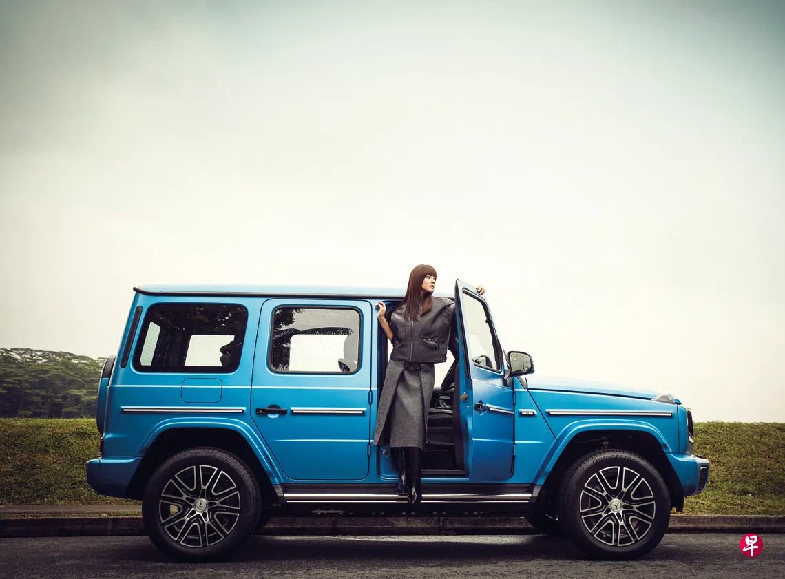 《风华》封面首次以汽车入镜,宝蓝色马赛地纯电G级越野车G580外形独特,传统又摩登。巧合的是,黄馨慧21岁成年礼的生日礼物,是马赛地SLK敞篷车款。“那是我的梦想车型,没想到父母会送我作为生日礼物。他们一向节俭不爱炫耀,比起拉风,他们更重视实用、耐用和情感价值。父亲从小就教我们学会控制预算,记得小时候,如果我超出预算五块钱,他会提醒我调整。”她认为,那份礼物是父母表达爱的一种方式,那辆车开了十年,陪着她度过大学和演艺圈时期。