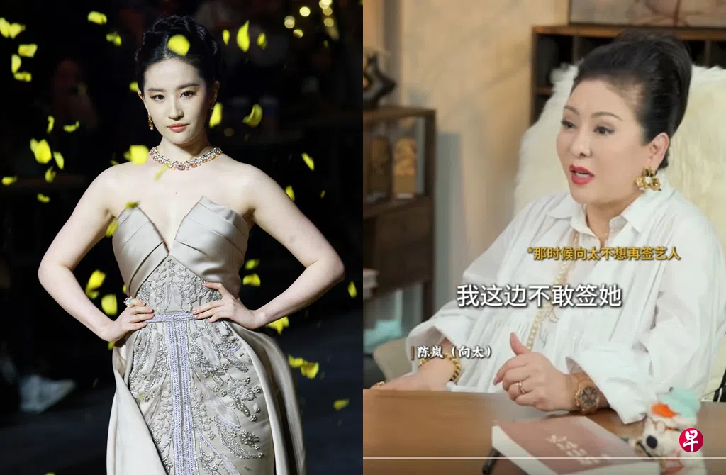 向太说,当时她思考许久没有签下刘亦菲,“因为她14岁全身名牌,然后跟我说‘姨,我要你把那个化妆师给我叫来,帮我化个妆’、‘然后我要去那个造型师那边,我去弄个头发’”,向太直言当听到这些时,当下把她吓着。不过她也缓颊当时刘亦菲才14岁,思想仍未成熟,后来她进社会随即出道,开始拍戏之后,整个人就不一样了。