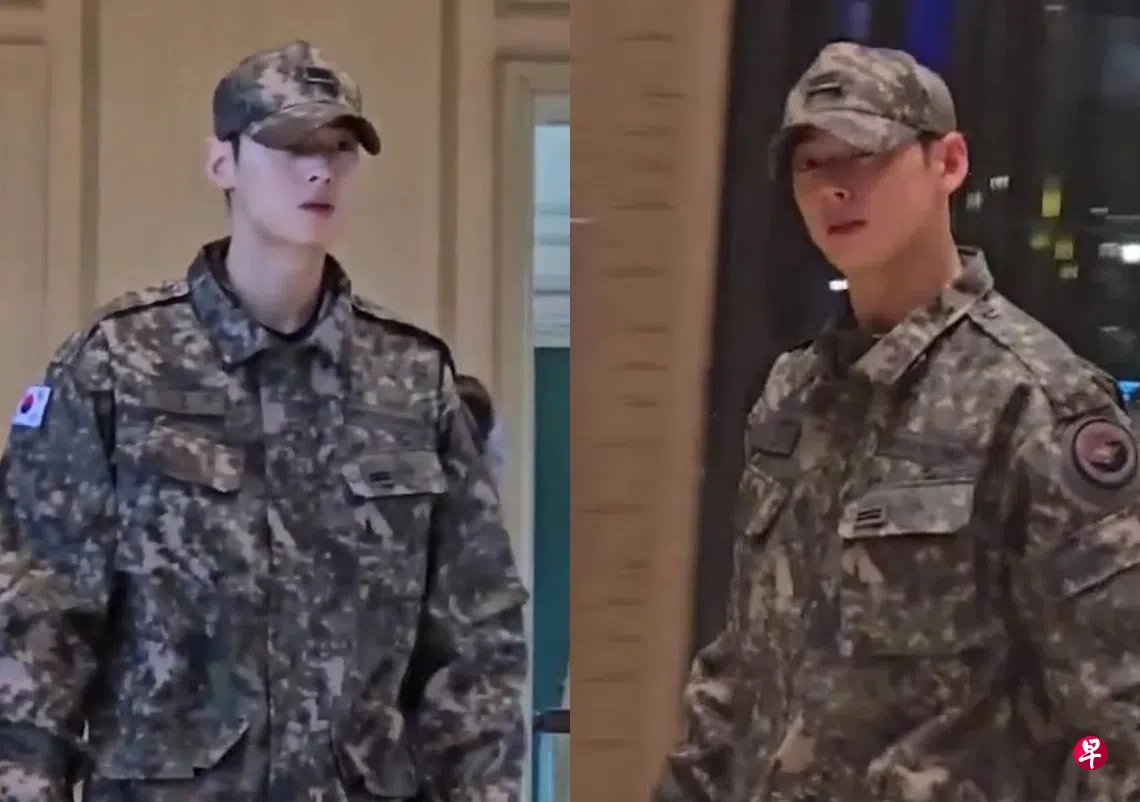 (庆州讯)韩男团ASTRO的28岁“脸蛋天才”车银优(Cha Eun-woo)7月时高唱从军乐,在军中表现优异。他星期四(10月30日)被捕捉到头戴迷彩帽,身穿军服,帅气现身庆州某酒店,原来是被派去支援亚太经济合作组织(APEC)峰会。