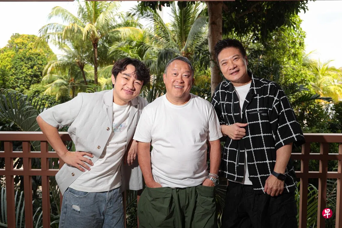 港星曾志伟、王祖蓝和钱嘉乐为圣淘沙名胜世界主办的“超级水上派对”来新加坡,星期六(11月15日)傍晚于圣淘沙水上探险乐园(Adventure Cove Waterpark)与马来西亚艺人展开水上游戏大对决,三人在活动前接受本地媒体的访问。