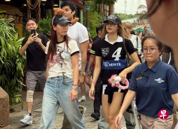 星期四(27日),各大社交媒体包括TikTok、小红书等都疯传网友上载的两三段有关Lisa和SORN在环球影城的视频,只见两人一身休闲舒适的装扮,Lisa头戴黑色鸭舌帽再套上可爱公仔发箍,身穿黑色上衣搭配黑白短裤,而SORN则是细肩背心,搭宽松牛仔长裤,佩戴毛茸茸发箍,尽显青春洋溢。