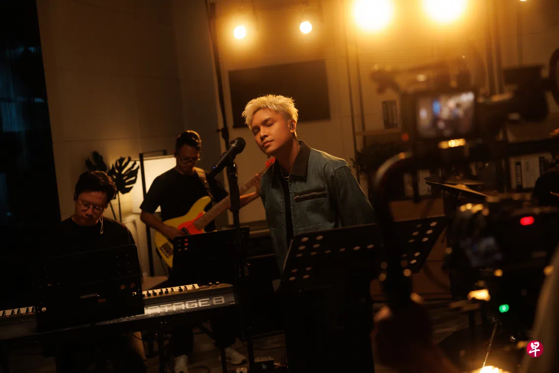 菲道尔最近受邀参与大华银行的“Afterhours”线上音乐会,特别飞来新加坡,在百汇广场(Parkway Parade)的大华银行分行录制四支特别版MV。他告诉早报,疫情后线下演唱会恢复常态,这次在银行打烊后的闭门录制,反倒让他找回久违的新鲜感。“我很喜欢这种跳脱框架的创意,虽然是在银行里拍摄,但舞台装潢非常精致漂亮,整个团队很专业,一点也不马虎。”