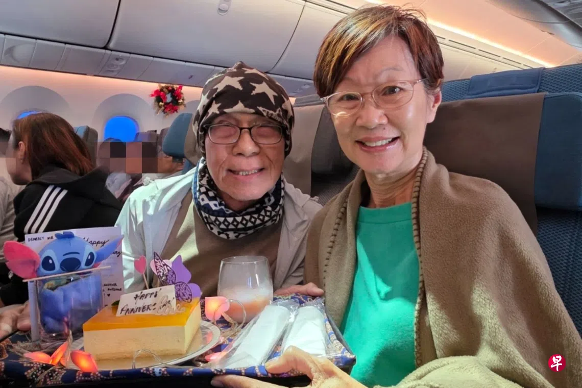 邬伟强12月25日中午通过短信回应《联合早报》时说,23日是他和莫燕兰的结婚正日,两人结婚48年。23日当天,夫妻俩从香港飞回新加坡,没想到热情的空姐送来祝福的蛋糕,还亲笔写了一张贺卡祝福他们,让他非常惊喜和感动。