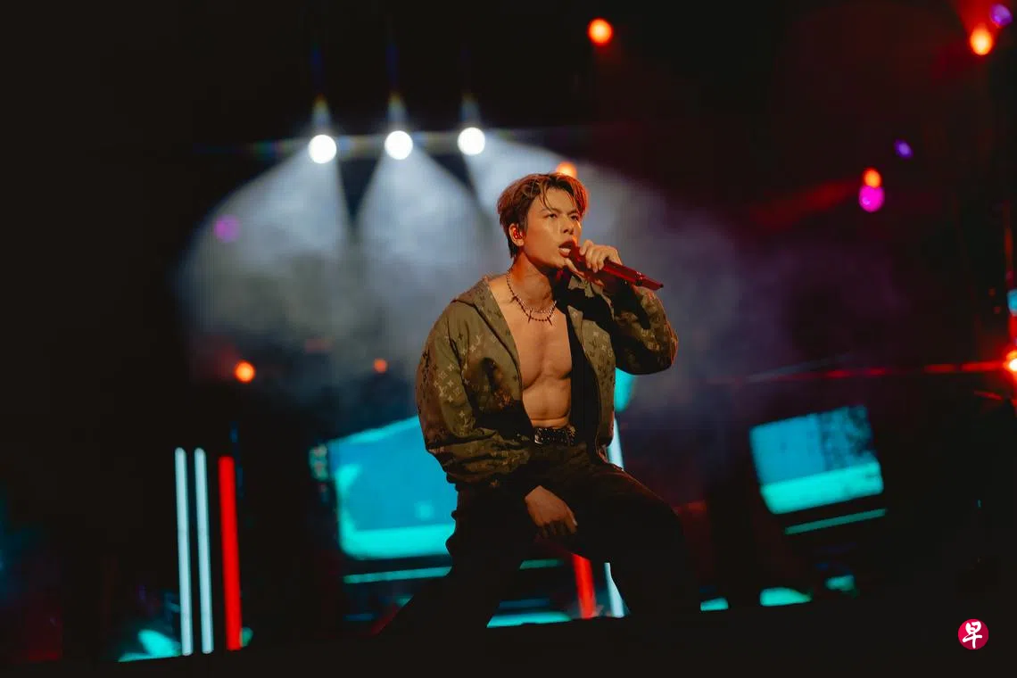 容启航这次露点演出,还晒出好身材和腹肌,非常吸睛,也让现场气氛嗨爆。他在台上也和准人夫本地歌手向洋合唱,让人听出耳油。