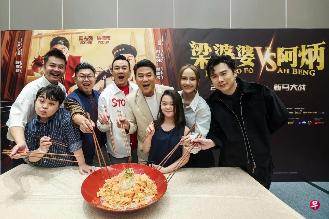 今年有11部海内外贺岁片即将在狮城展开激烈的票房厮杀。在众多强档中,最引人瞩目、也最具话题性的,要数集结新马两大喜剧经典IP大咖的重磅之作《梁婆婆VS阿炳》(以下简称《梁炳》)。