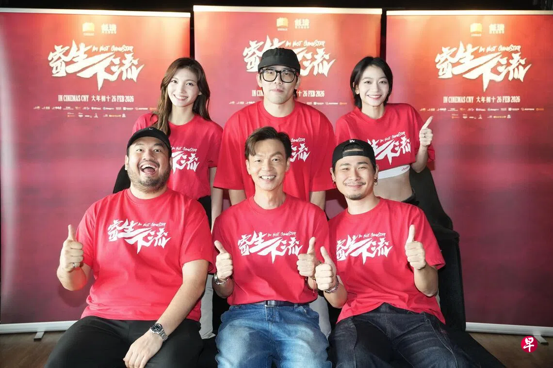 《关你茶室》2025年创下1330万元令吉(约430万新元)的票房佳绩,成为马来西亚最卖座本土中文电影第三名。问他们是否有信心打败自己,男主角丧彪来一招“推卸责任”,说:“我觉得票房80%要靠Mark哥(李国煌)。”
