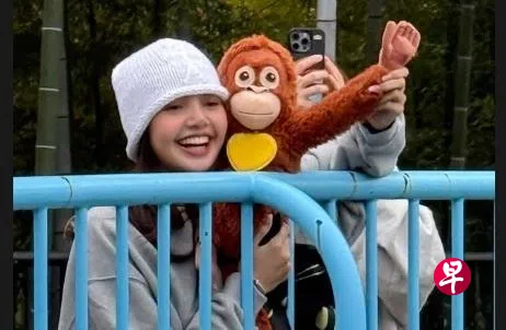 韩国天团Blackpink成员Lisa也被Punch圈粉了,她近日到日本出席美容品牌活动后,带着同款红毛猩猩玩偶去见Punch。她在instagram限时动态分享照片,当中可见她拿着玩偶,还开心地露出了“姨母笑”(网络用语,指不自觉地流露出的一种慈爱宠溺,带幸福感的微笑)。
