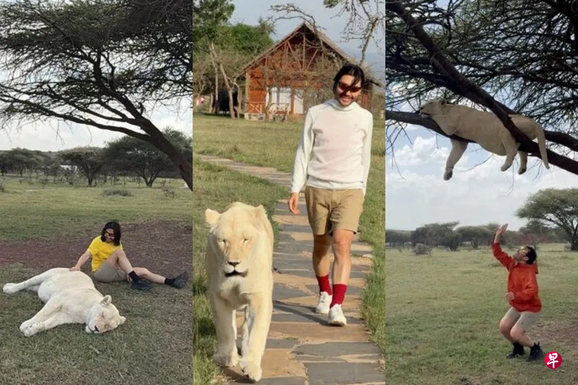 卢弘喆在社媒发文写下:“试着触碰沉睡狮子的毛尖。#朝向好死 #按计画变老中……”并曝光多张在非洲草原拍摄的照片与视频。画面中可见他入住的独栋住宿周边有长颈鹿、斑马、牛羚等野生动物自由穿梭,而他本人更坐在白狮身旁抚摸其腹部,甚至与狮子并肩行走,神情自然。
