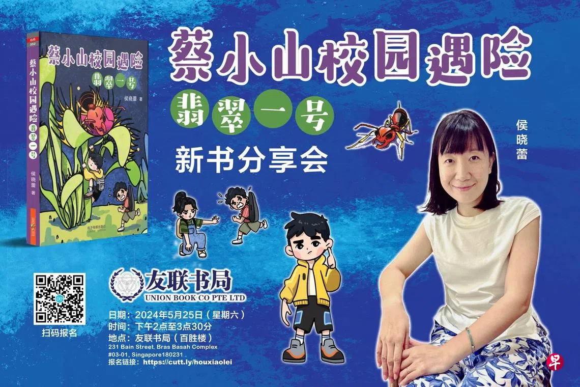配合城市阅读节,友联书局(百胜楼)将于5月25日(星期六)下午2点为玲子传媒出版社出版、侯晓蕾创作的青少年小说《蔡小山校园遇险~翡翠一号》主办新书分享会。侯晓蕾将在分享会上和出席者交流、签书。欢迎读者到场参与,并浏览、选购友联书局的优质中文读物。