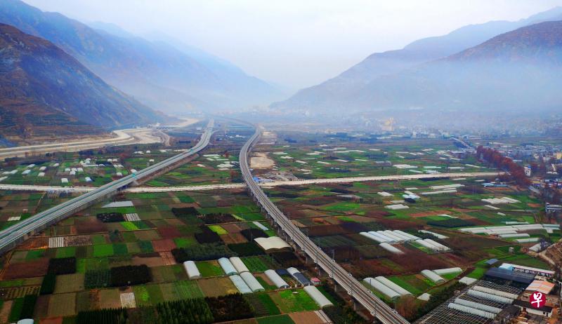 历时八年建设的兰渝铁路岷县至广元段昨天正式开通运营。这意味着,兰渝铁路仅剩兰州夏官营至岷县约180公里的区段未开通。预计2017年年底实现全线开通运营后,将形成兰州至重庆至广州的南北铁路大干线,成为与京广线、京沪线并列的三条南北铁路大动脉之一。兰渝铁路北起兰州枢纽,向南经甘肃定西、陇南、陕西宁强进入四川境内,由广元、南充接入重庆枢纽,建设总长度1171公里,是“渝新欧”国际大通道的重要组成部分。图为兰渝铁路甘肃陇南境内的白龙江3号特大桥(右)与高速公路从山脚处蜿蜒伸出。(新华社)