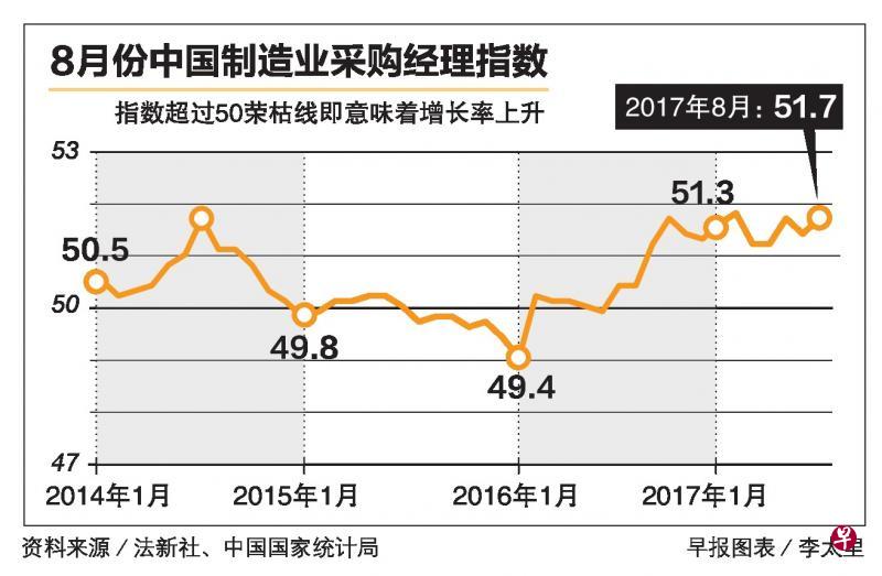 据中新社报道,特约分析师张立群认为,制造业PMI继7月份小幅回落后,8月份即现回升,且在荣枯线以上连续保持了13个月,表明中国经济平稳增长的基础已总体确立。