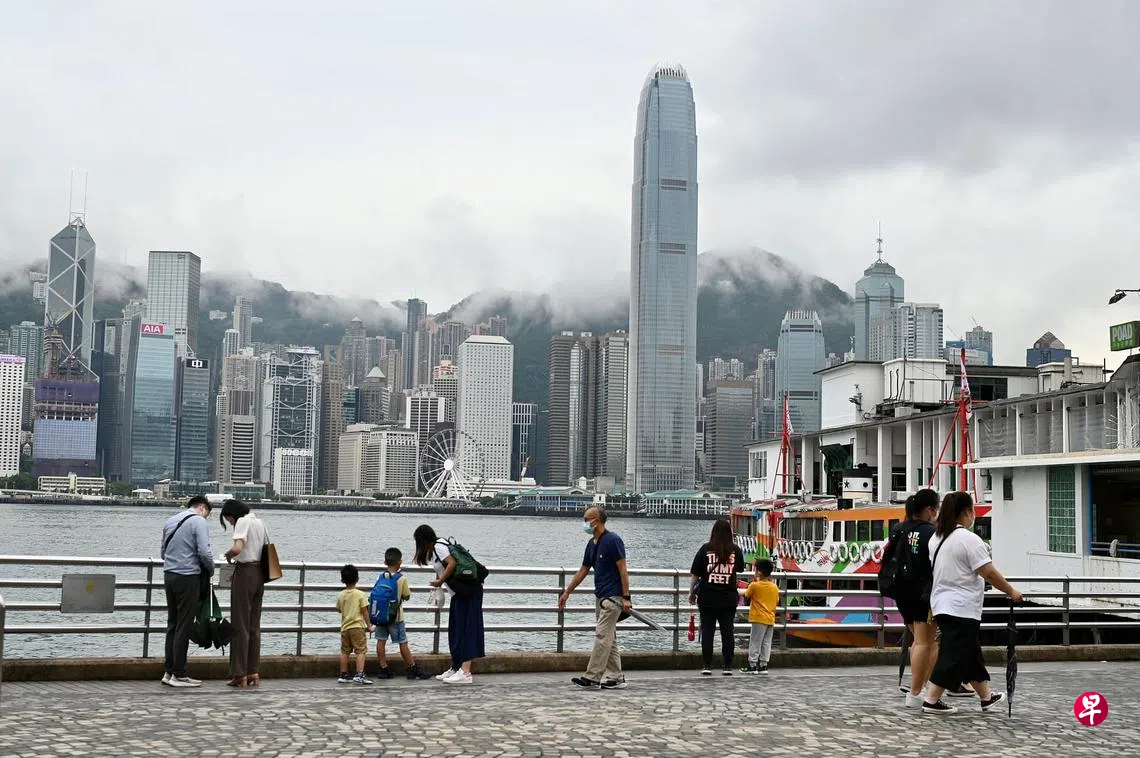 香港特区政府在8月12日下午公布第二季实质本地生产总值,按年计跌幅放缓至1.3%,全年经济预测下调为-0.5%至0.5%。这是港府在三个月内第二次下调香港全年经济增长预测。港府表示,考虑到上半年经济表现逊于预期,以及环球经济前景急剧恶化,将今年实质本地生产总值增长预测,由5月时的增长1%至2%,下修至跌0.5%至增长0.5%。图为香港市民在尖沙咀一带消遣。(中新社)