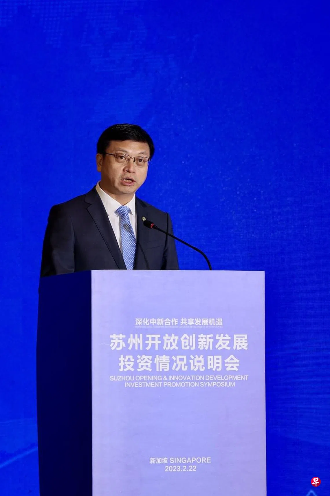 苏州开放创新发展投资情况说明会星期三在新加坡丽思卡尔顿酒店举办。到新加坡访问的中共苏州市委书记曹路宝、苏州工业园区党工委书记沈觅、新加坡贸易及工业部常任秘书林明亮与多名新中企业代表与会。