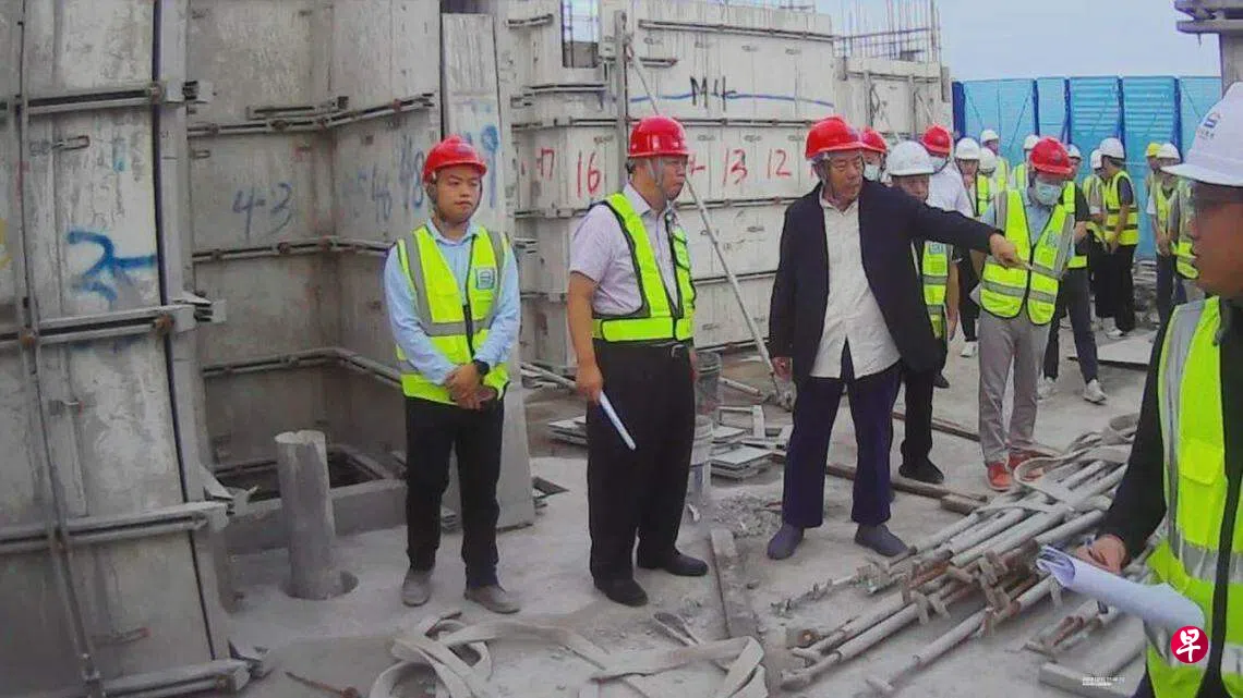 稿中还配了一段20秒的现场视频,杨国强头戴红色安全帽,正在与工人交谈。