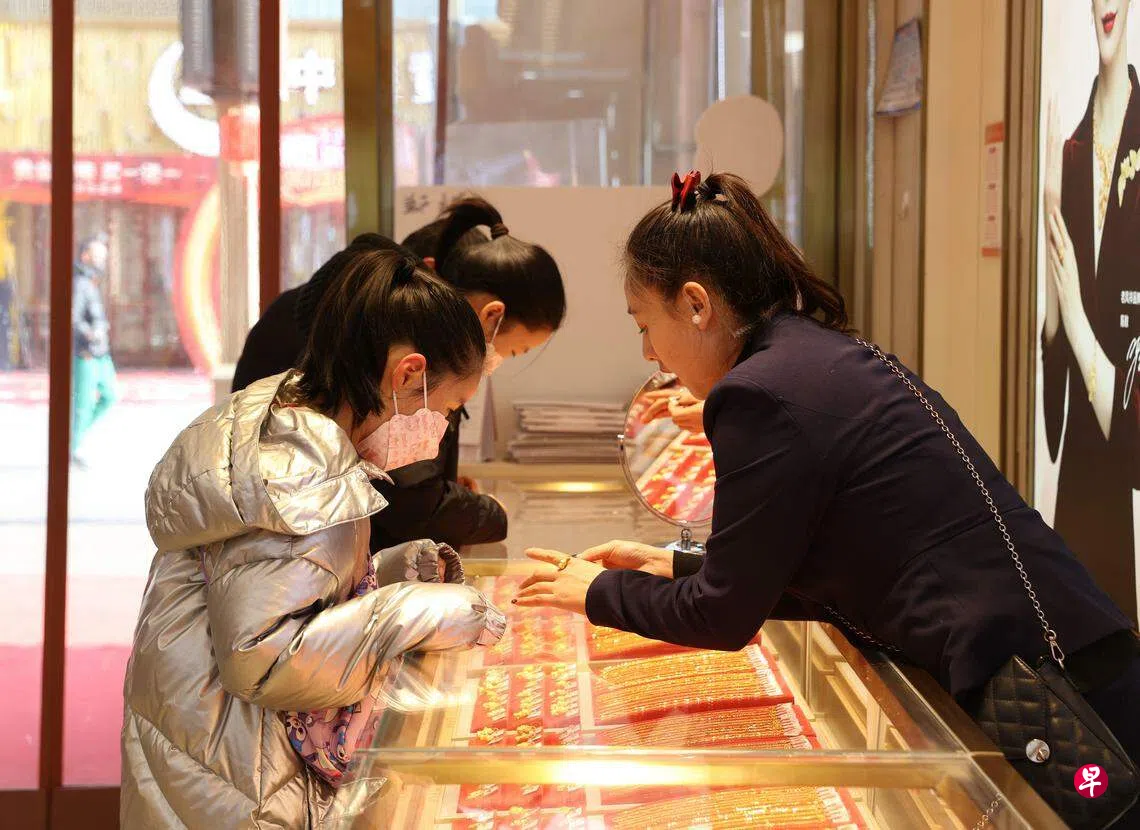 中新网引述在上海豫园城隍庙的金店透露,买金以年轻人居多,一天卖出1000多根生肖龙金条;有消费者排队两小时,一口气买下20万元(人民币,下同,3万7300新元)金饰。