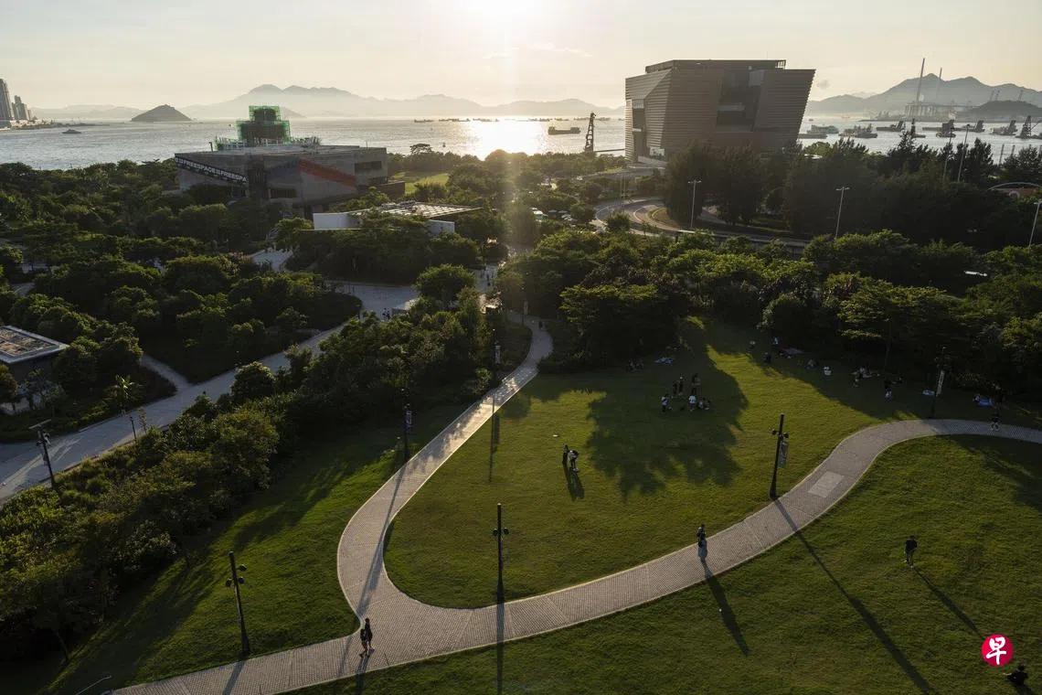 如今,这个坐落在维多利亚港填海土地上、约为纽约中央公园十分之一大的西九文化区仍未完工。图中的故宫文化博物院,以及现代艺术博物馆M+等场地旁不乏建筑工地。