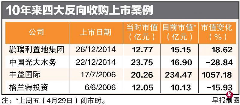 不过,丰益国际并不代表反向收购上市股票整体的表现,这家公司在蓝筹股当中也属于异数。