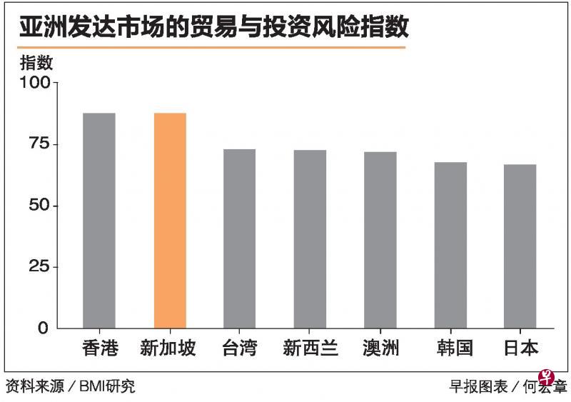 BMI研究指出,新加坡的良好投资环境,反映在贸易与投资风险指数的高得分——87.2分(满分为100)。新加坡精简管制条例,将提供它对外国投资者的吸引力。此外,BMI研究预期这有助新加坡维持在世界银行亲商环境调查报告的位置,新加坡在2017年的报告中高居第二位。