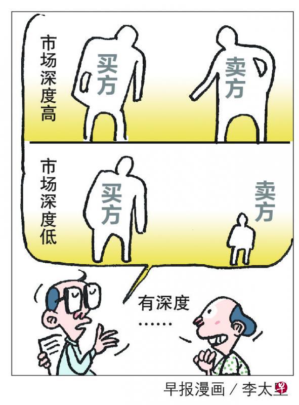 具有较高市场深度的股票,因为卖出和买入双方资金量更能够匹配,在有较大额的卖出时,不会因为买入量不足,导致价格大幅下跌;反之,在有较大额买入时,也不会因为无相应卖出,而导致价格跳升。