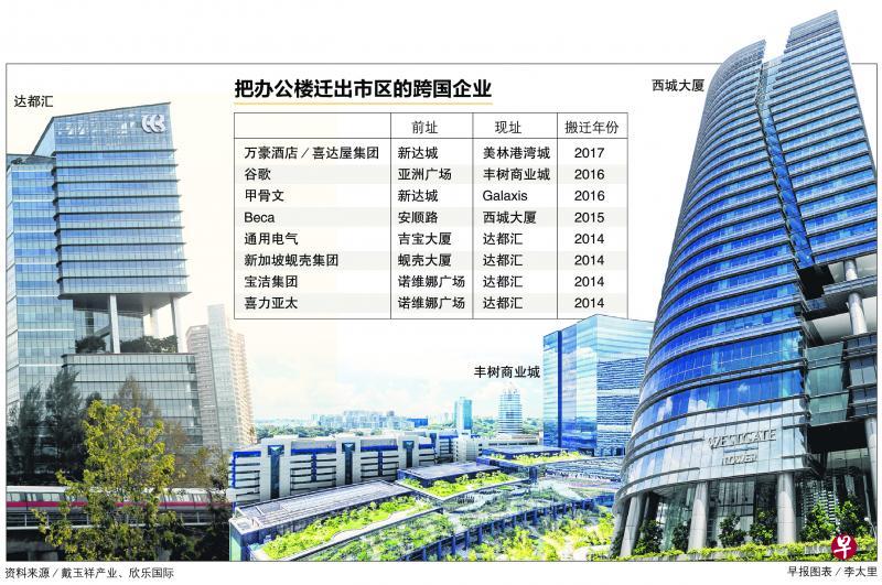 受访分析师认为,商业园和市区外办公楼的租金显著较低,也是跨国企业从中央商业区撤走的原因。