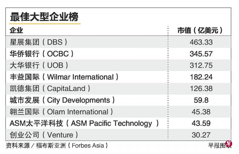 上榜的本地企业包括星展集团(DBS)、华侨银行(OCBC)、大华银行(UOB)、丰益国际(Wilmar International)和凯德集团(CapitaLand)等。