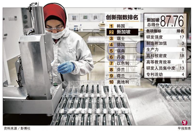 新加坡在全球的创新地位上升,今年在彭博社创新指数排名跃升一个名次到第二位,仅次于韩国,并排在瑞士之前。