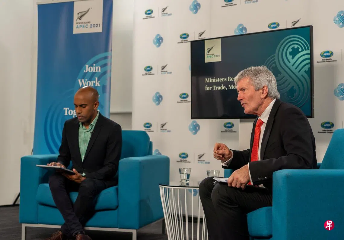 冠病19疫情 APEC经济体承诺加快疫苗等相关产品流通转运订户赠阅文章APEC贸易部长会议主席奥康纳(右)在部长会议前的记者会上说,他有信心APEC经济体将在这个艰难时期并肩作战,展示对自由、开放和公正的贸易承诺。(APEC提供)王阳发 ongyh@sph.com.sg亚太经济合作组织(APEC)经济体将加快所有冠病疫苗和相关产品的流通和转运。APEC贸易部长昨晚发表联合声明,重申将确保贸易环境支持安全有效率地分配冠病疫苗的承诺。亚太经济合作组织世界贸易组织冠病疫苗颜金勇上一篇在怕与不怕中应对通胀下一篇凯发清盘事件反思购买此文章