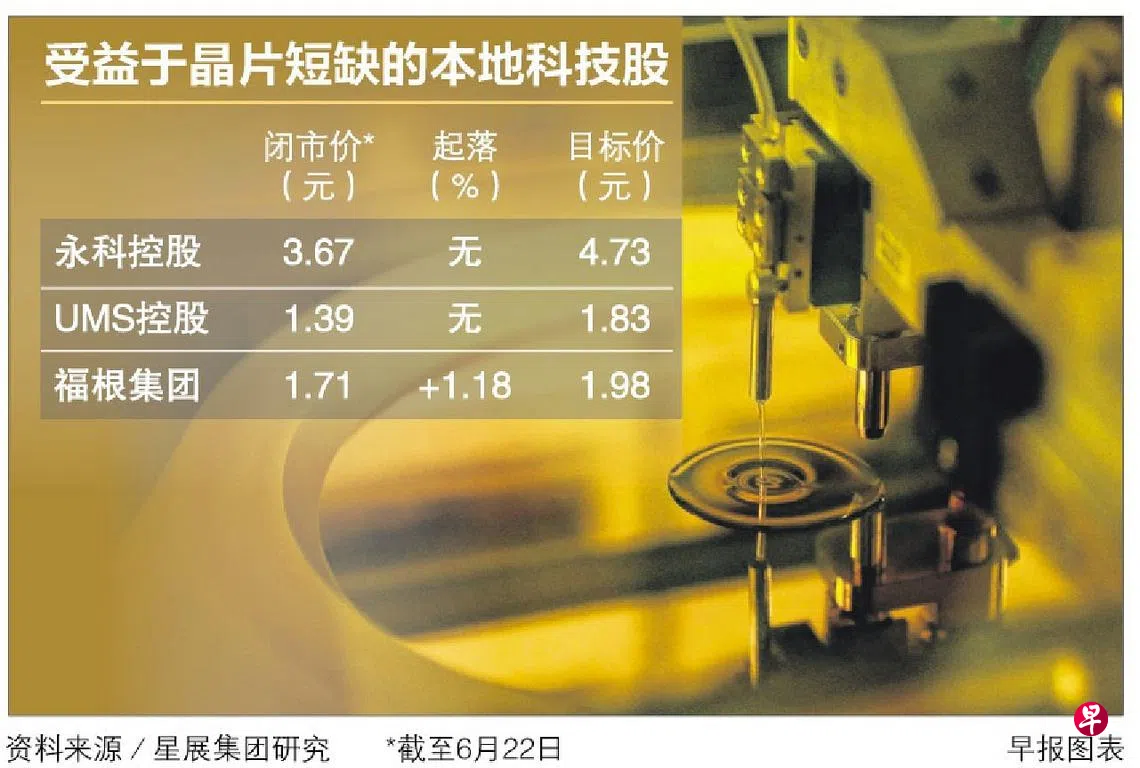 全球闹电子晶片荒,促使半导体厂商加快生产,股市分析师预测晶片短缺问题会持续到后年,与半导体有关的本地科技股将从中获益。