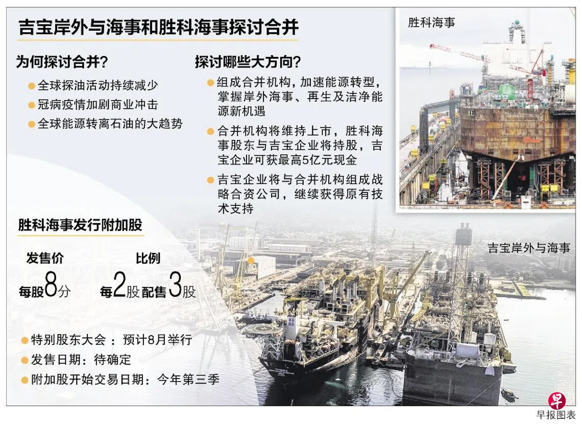 吉宝企业(Keppel Corp)与胜科海事(Sembcorp Marine)希望在今年底达成协议,将吉宝岸外与海事(Keppel Offshore & Marine)及胜科海事结合,组成更强大的合并机构,加速往绿色能源业务转型。