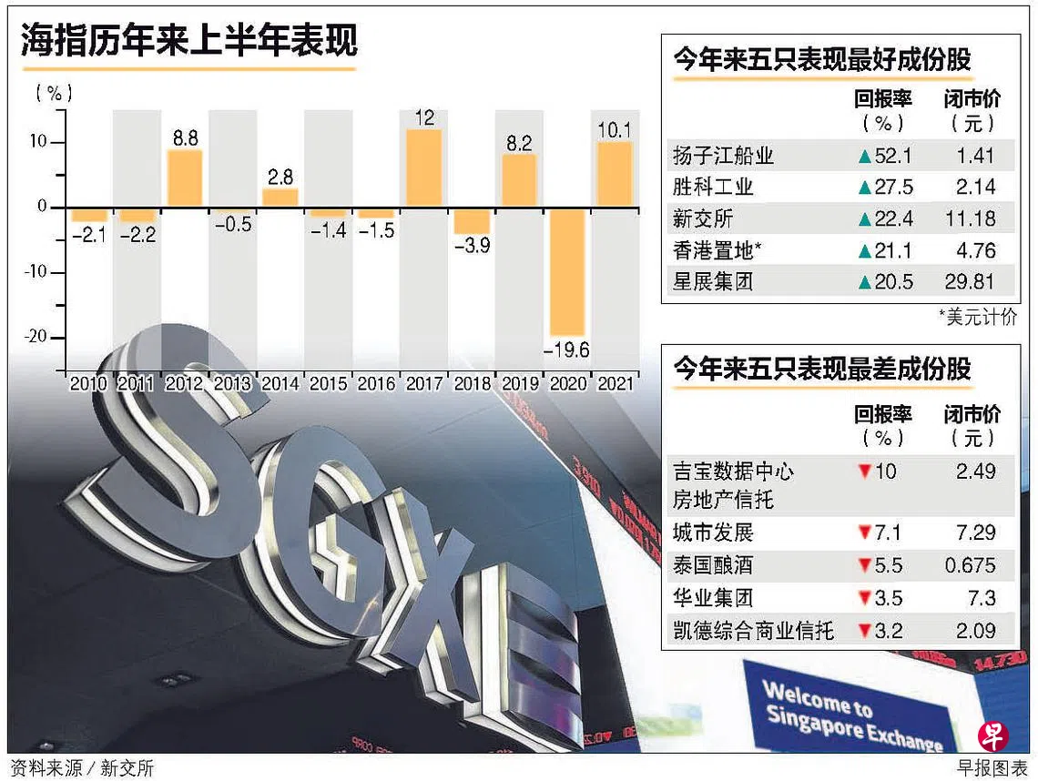 受德尔塔变种毒株扩散及我国5月份实施的高警戒防疫措施的冲击,本地股市今年上半年后劲不足,新加坡海峡时报指数始终无法突破3200点关口及重返2020年疫情暴发之前最高位值。